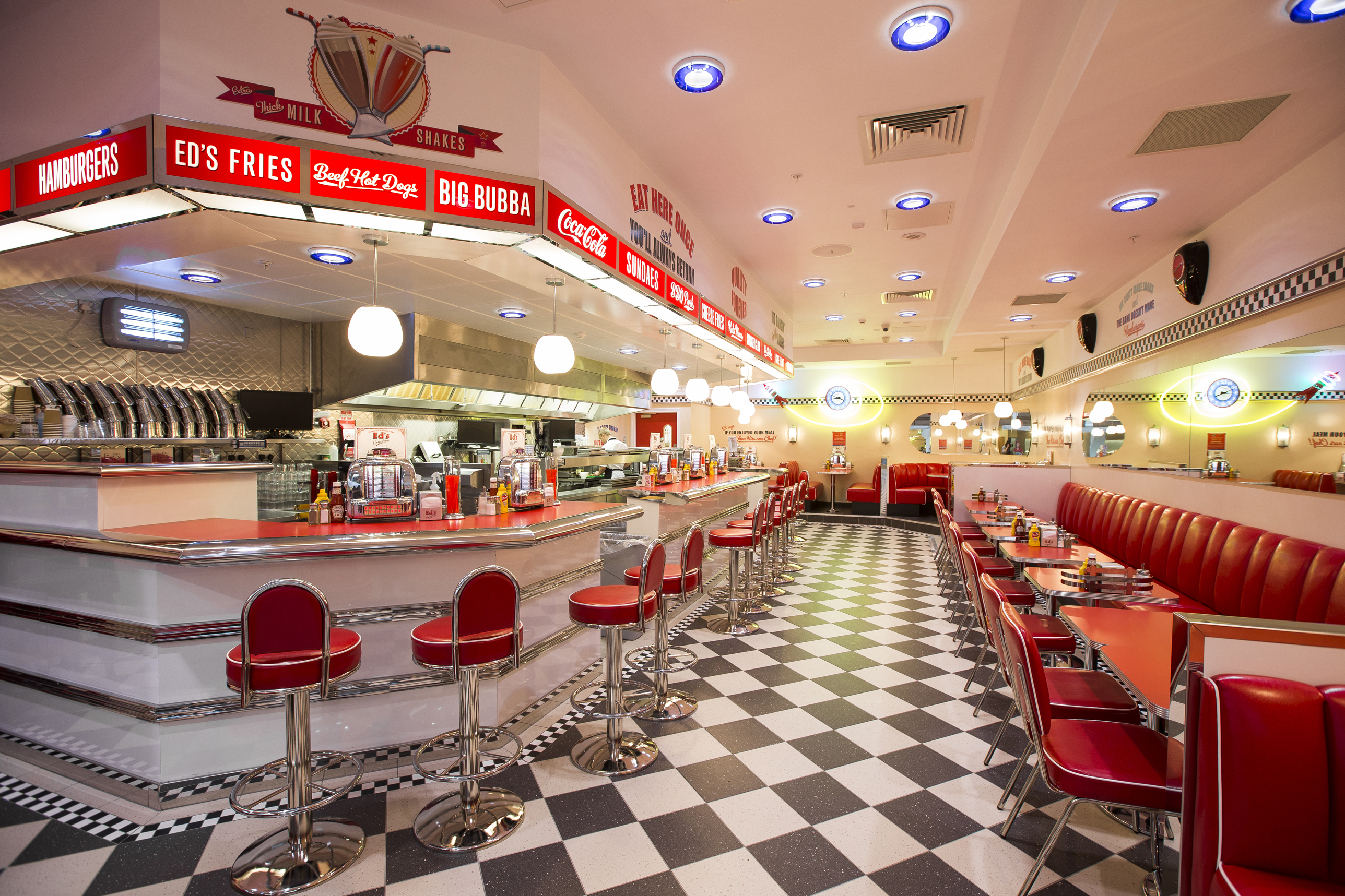 Ed’s Diner is one of the only chain restaurants I know that can pull of a 50s vibe. Once inside you automatically feel like you’re a member of Grease Lightning listening to old-time classics while staring at vintage memorabilia. The only thing missing are its customers jumping up and sporadically bursting into song.