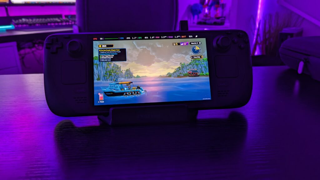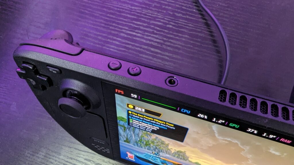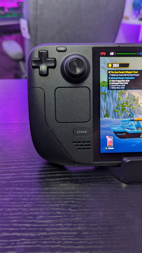 So the new Steam Deck Oled has a 50-watt hour battery over the 40-watt hour battery of the original Deck. They’ve reduced the processer from 7nm to 6nm, and improved the thermals and heat pipes and all that jazz which makes the Oled Deck a little quieter. Now okay, in real life, this isn’t going to make a huge difference to your battery life, you’re not going to be gaming all day on this thing, but you can expect an extra hour or so depending on the demand of the game you’re playing. Cyperpunk, much less so, but Dave The Diver you can expect more.