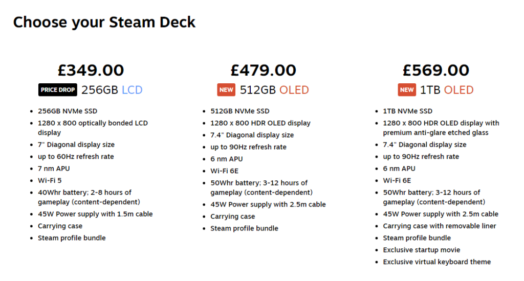 As I said in the intro, this thing isn’t the Steam Deck 2, and if you’ve already got yourself an original Steam Deck, it’s not really worth upgrading at this point. Though however, if you are new to the Steam Deck and are looking to purchase one, definitely go for the Oled version over the original, as the changes we’ve outlined here make that extra cost so worth it in the long run! I will also say that there has been some changes. According to the Steam website, the original 64GB and 512GB are no longer available, and have been superseded by the Oled version. So now in their lineup is a 256GB original version at £349, a 512GB Oled version at £479, which by they way is SO much cheaper than the original 512GB Deck cost on release, and finally a brand new 1TB Oled version coming in at £569. Which one will you choose?