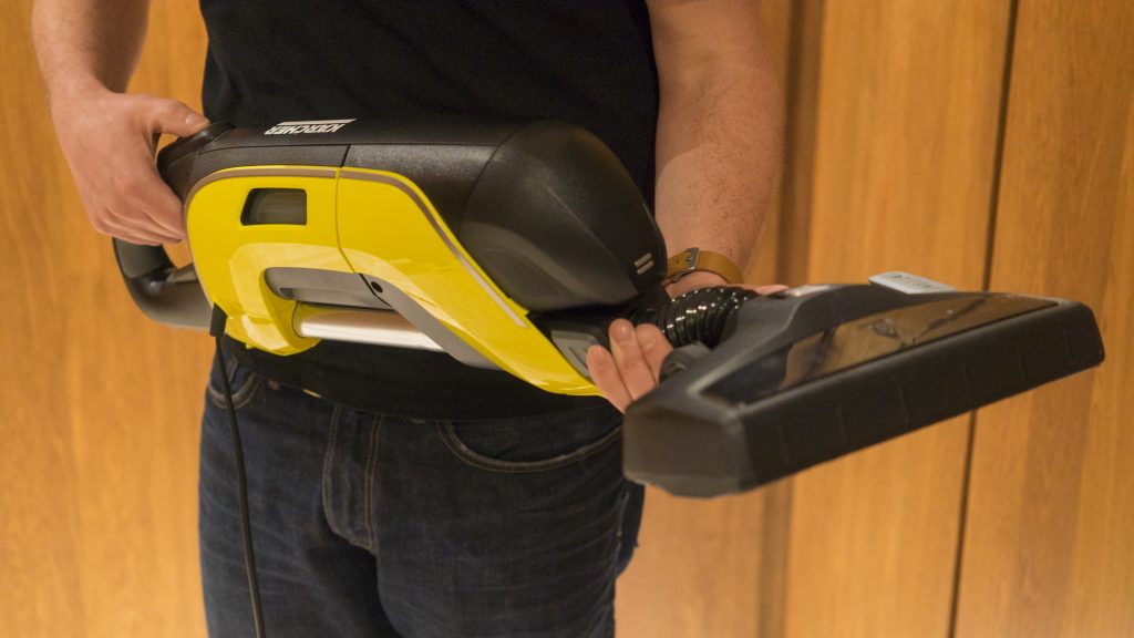 The new vacuum cleaner from Kärcher, the VC5, is an energy efficient, pretty light in design cleaner that enabled users to clean anything from their floors to the cobwebs in the corner of their ceilings. The vacuum cleaner requires to be plugged in to keep the 500w motor going, but the suction on the device is really great, even compared to some of the bigger brands like Dyson and Hoover. It is completely bagless with an easy to remove container for easy cleaning.