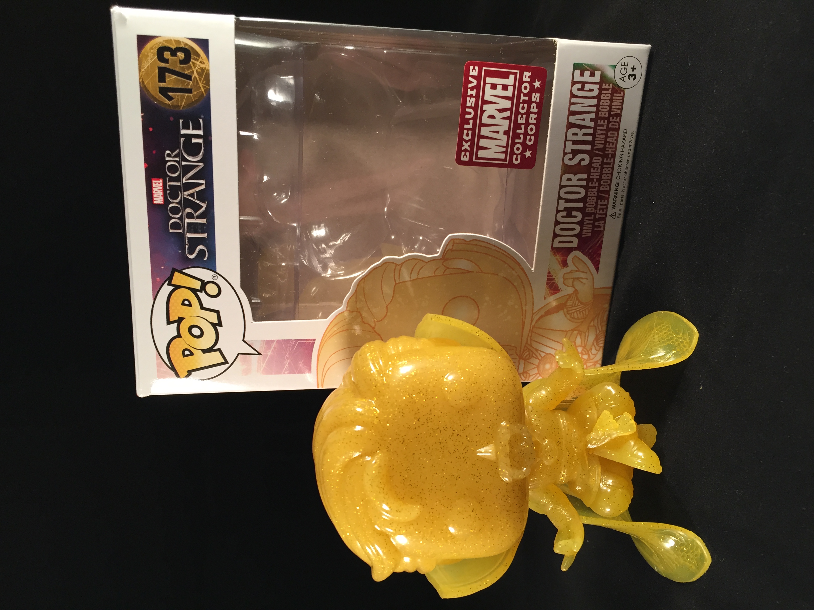 Finally we the Funko Pop and they have pulled out all the stops on this and I know collectors will love it! It is a posed, Dr Strange, levitating in the air, with is cape acting as a stand for the Pop. I haven’t seen anything like it before, pops usually have feet or a stand or sorts, so Funko have really pushed the boat out on Dr Strange. The level of detail is great and the glittery finish is amazing! The pop is a bobble head by the way!