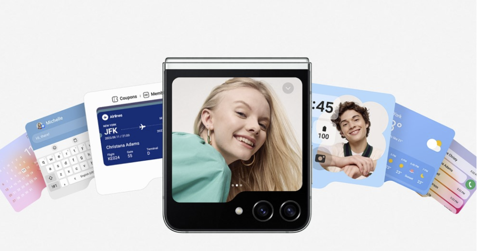 Samsung today unveiled their new Galaxy Z Flip 5, their latest foldable smartphone that can perfectly fit inside of your pocket. Not that other mobiles can’t these days, but the Z Flip 5 is pretty tiny. From the Flex window on the front, you’re able to use widgets, check the weather and time, control your music playback or catch up on the stock market. It’s seamless to switch between them with the Multi Widger View, and you can also check your notifications and reply to texts with a full qwerty keyboard.