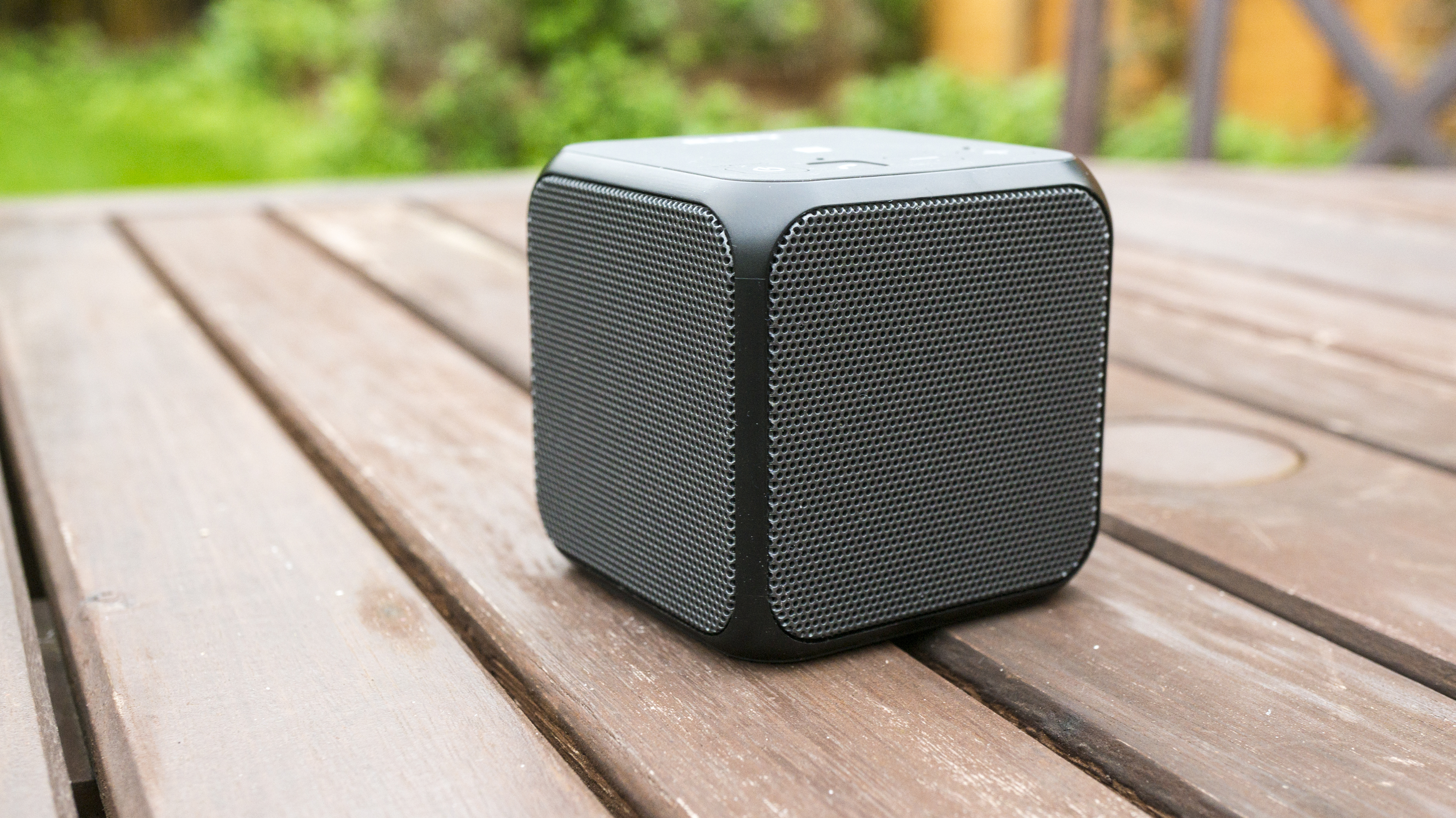 The design looks very funky, with black grilles covering three of the six-sided shape. The other sides are dedicated for its base, the top is used for the main controls and the back for your USB and auxiliary input.
