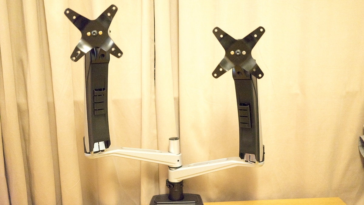 The base attaches to the desk rather easily, with two pressure plates that screw to the rear of the desk so it hooks over. The arms attach together with ease, without the need for attaching screws or fiddling with little allen keys. You’re up in about 15 minutes from when you work out which arm goes where.